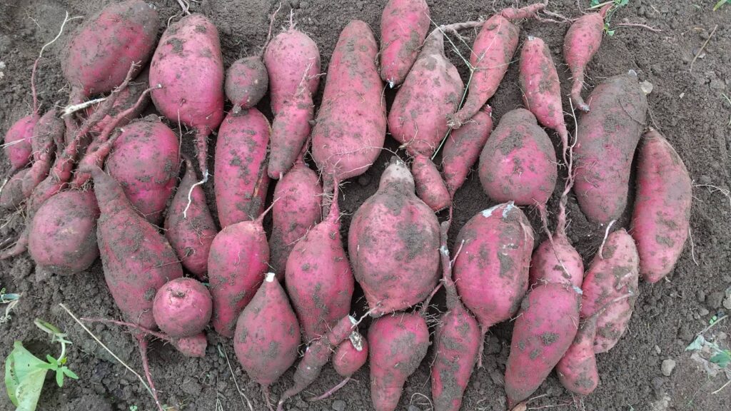 紅はるかは、しっとりねっとりとした食感で糖度がたかくて焼き芋にすると美味しいらしい。1列だけ試しに掘ってみました。昨年の「紅あずま」の方が良くできていた気がします。紅あずまは、ほくほくとして天ぷらや大学芋などの料理に向いているそうです。干芋と焼き芋が大好きな夫は、お医者さんからドクターストップがかかっていて食べられずテンションダダ下がりです。😢収穫直後にたべても美味しくないので、少し寝かせて熟成させてから頂こうとおもいます。✌✌