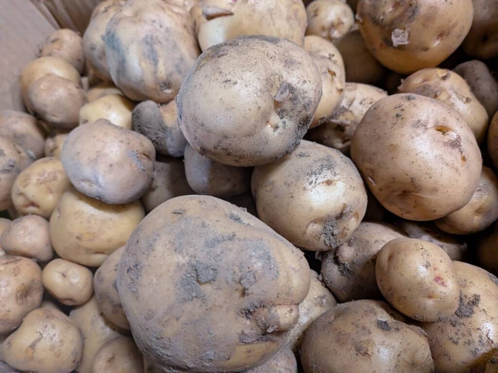 今年も春じゃがが、アンチエイジング(若返り)をしました。梅雨まえに収穫した春じゃがも夏を越すとすぐに芽が出始めるので、にょきにょき芽が出始めると肥料を施して土に戻します。そして霜が降りる頃、しわしわのじゃがいもも美味しくなってご対面です。😊
