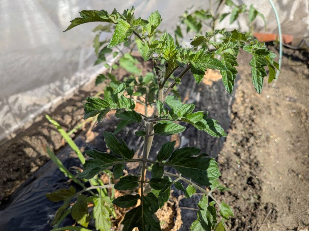 それはさて置きトマトはいつも同じ場所なので、定植時にニラの混植(コンパニオンプランツ)をしました。ニラの根に住む微生物がトマトの土壌病害(萎凋病)を抑制して連作障害を抑制してくれます。\(^_^)/