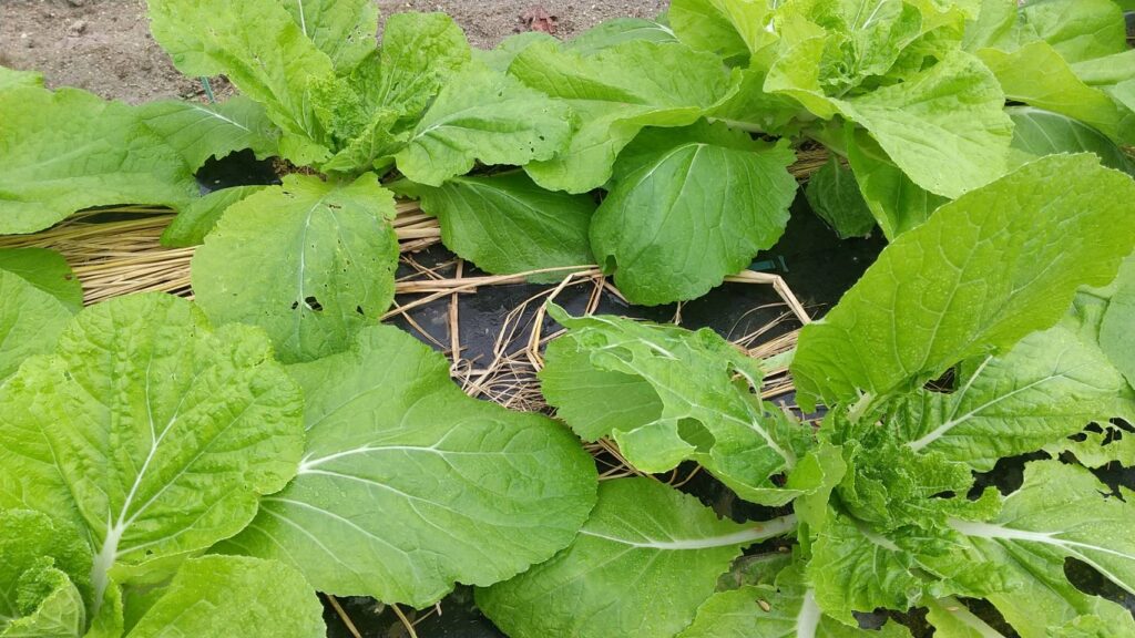 早く種まきをしたはずの白菜!!第1回目を失敗したため、かなり生育が遅れました。成長を早めようと白菜の栽培ではやった事がない黒マルチを張った所、3個も腐ってしまいました。「焼け石に水」ですね!!隣の畑を見渡すと、わさわさ茂って今にも食べれそうな白菜がいっぱい。まだ北風が吹くような寒さはありませんが、我が家のお鍋の仲間に入ってもらわなければ困ります。「隣の芝生は青い」と言いますがまさにその通り。泣けそうです!😢😢