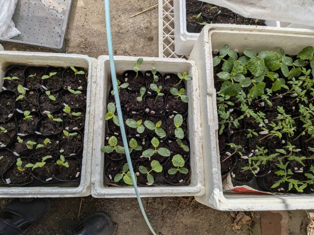 そんなこんなで3月中旬になりました。外気温に慣らす為、強制的に外に出してみました。朝晩はまだ寒い日もあります。屋外生活・1日経過、いまのところ大丈夫。不織布は掛けてあるけど少し心配🥺🥺🥺
