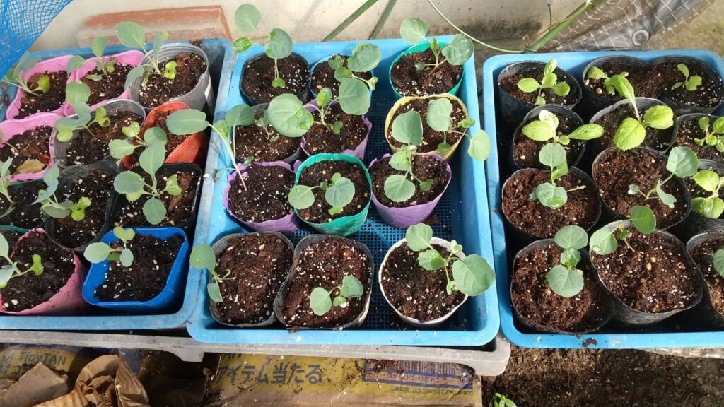 猛暑続きの毎日、【暑さ寒さも彼岸まで】まさに暦通りで23日(祝)より秋らしくなりました。この時を待っていたかのように家の周りの畑の様子も雑草畑から、アッと言う間に冬野菜が綺麗に植えられました。我が家の自家製の白菜・ブロッコリー・キャベツ達はまだ成長不足で、畑に植え付けるのはもう少し先になりそうです。早く大きくなあれ!!
