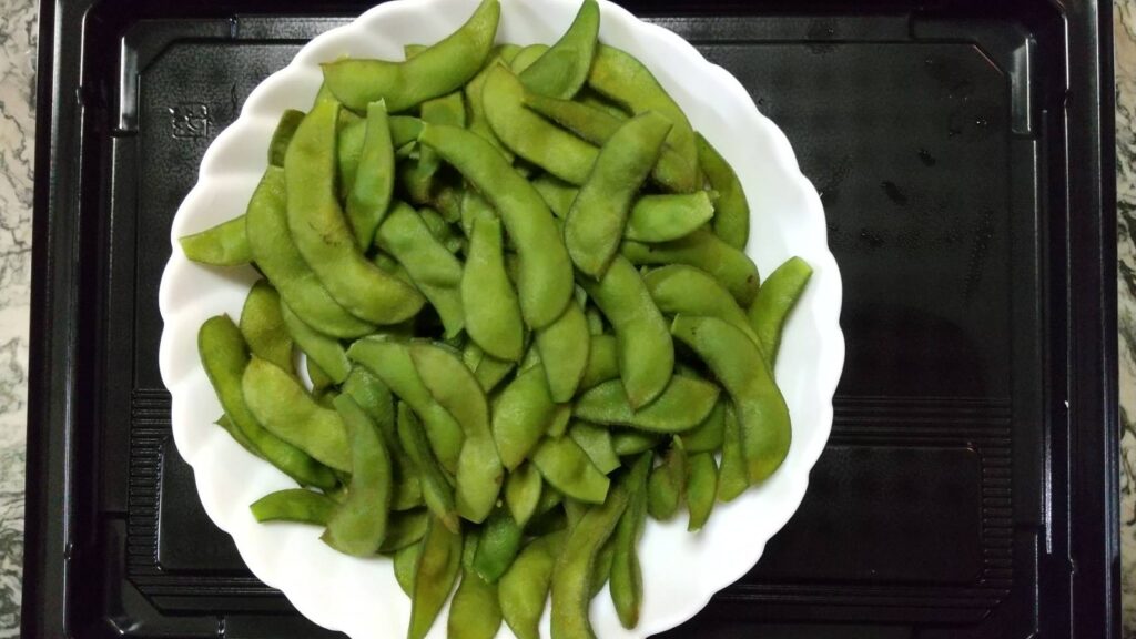枝豆(青豆)のさやが良い感じにふくらんできました。旬を迎えました。どんどん食べていかないと、アッと言う間に硬くなってしまいます。美味しいこの時をのがさず、さっと食べてさっとかたずけよう。これが丹波の枝豆だと、サヤが枯れるまで待って黒豆にしないと木を抜くことができません。